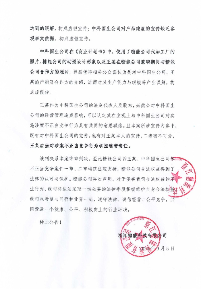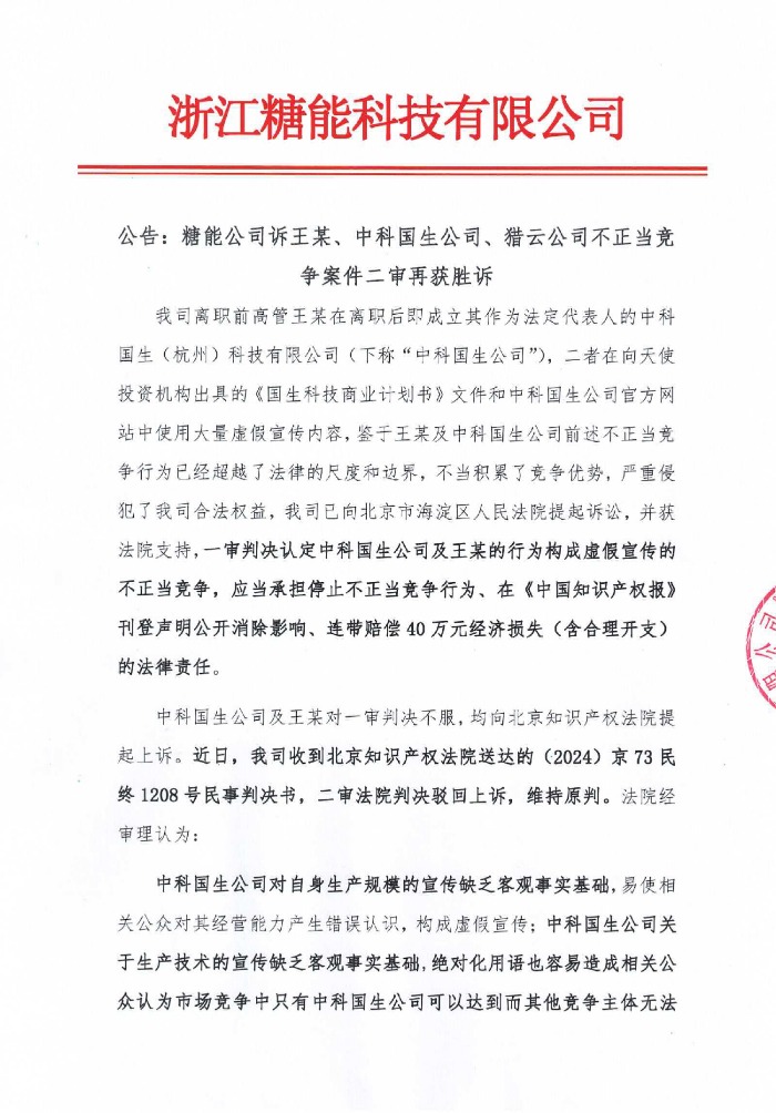 Fógra: Bhuaigh Sugar Energy an dara triail den chás iomaíochta éagórach i gcoinne Wang, Zhongke Guosheng Company, agus Lieyun Company